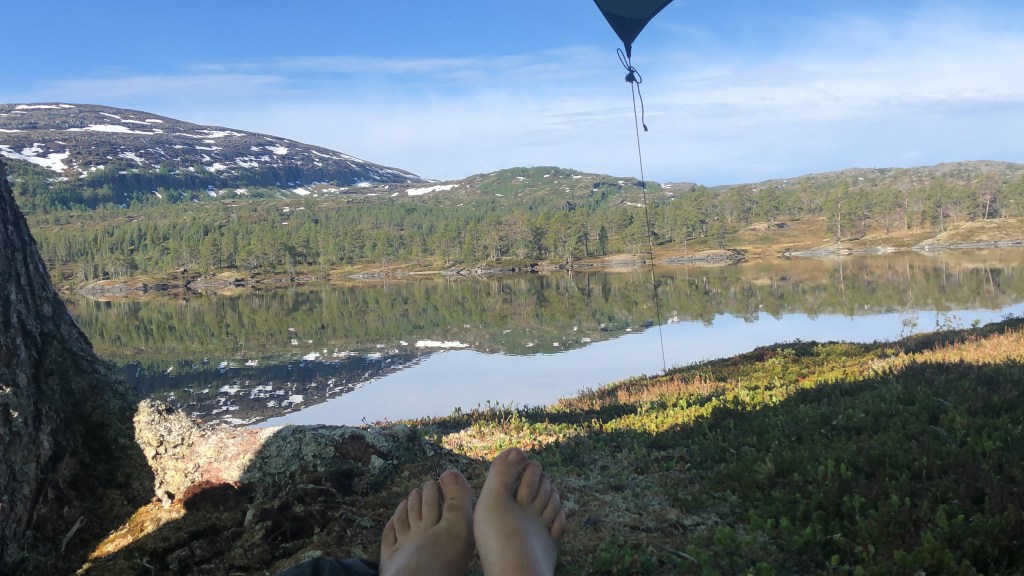 We set up different tents, hammocks and lavvos to both test different accommodation, and so that everyone gets comfortable. If it rains, we put up a tarp over the campfire.
