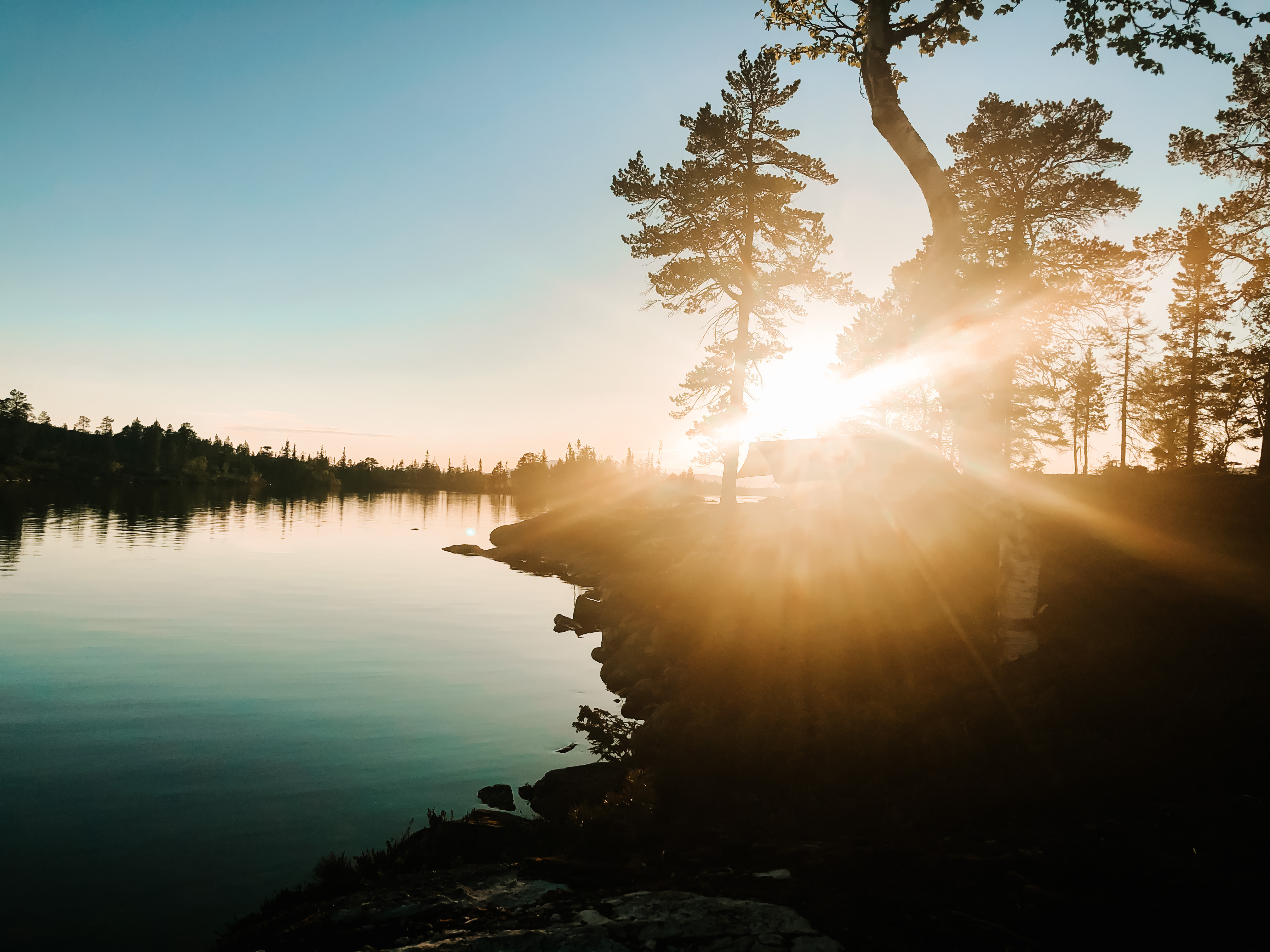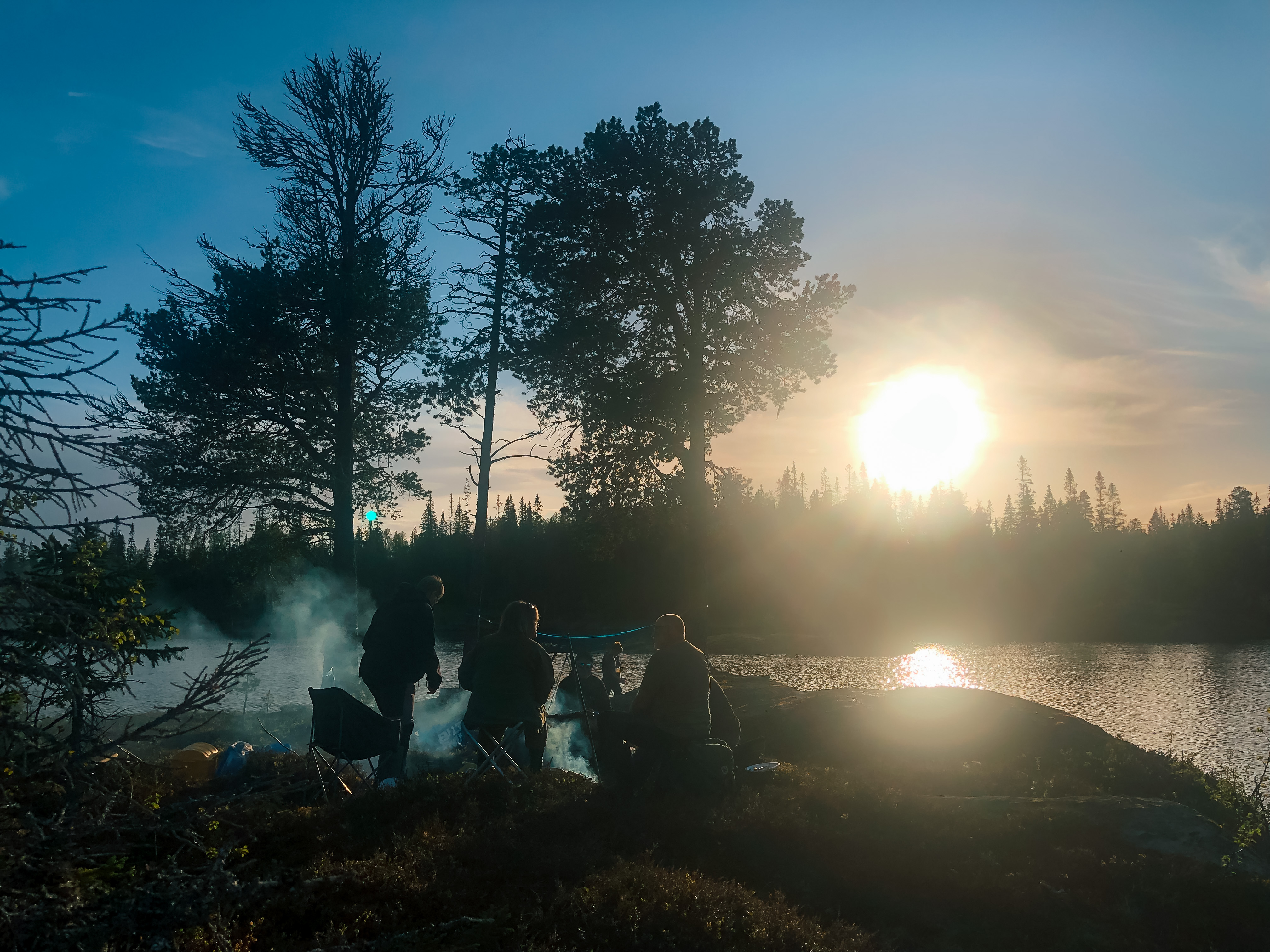 Apart from being able to enter the tent or lavvo, or go under a tarp all time and activities will be outdoors. There is something special about both seeing the sun rise and the sun set, being outside to experience this gives a completely different calm and presence. On the island there is a small house with a toilet and a small storage. Here you can charge batteries. The toilet is a pleasant outdoor toilet.